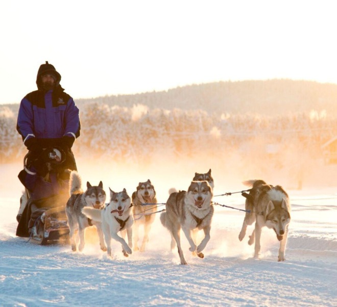 Dash through snowy forests with eager huskies and warm up by a crackling fire.